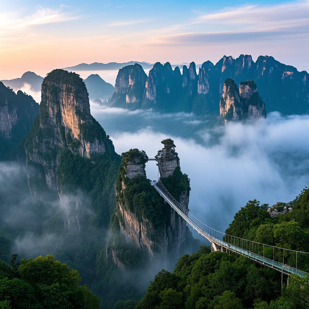 Zhangjiajie is a charming and unique traveling city. Strange peaks and rocks is its business card, quartz sandstone peaks and forests are rare in the world, Yuanjiajie, Tianzi Mountain and other attractions, strange peaks, cloudy, like a fairyland, “Avatar” was once in this scene. Tianmen Mountain is a perfect, glass stack thrilling, 999 level of the sky avenue shocking. There is also the Zhangjiajie Grand Canyon Glass Bridge, which hangs high above the canyon, making it a frightening and addictive experience. In addition, the local Tujia, Miao and other ethnic customs, special songs and dances, food flavor, so that tourists enjoy the unique journey of nature and humanities intertwined.